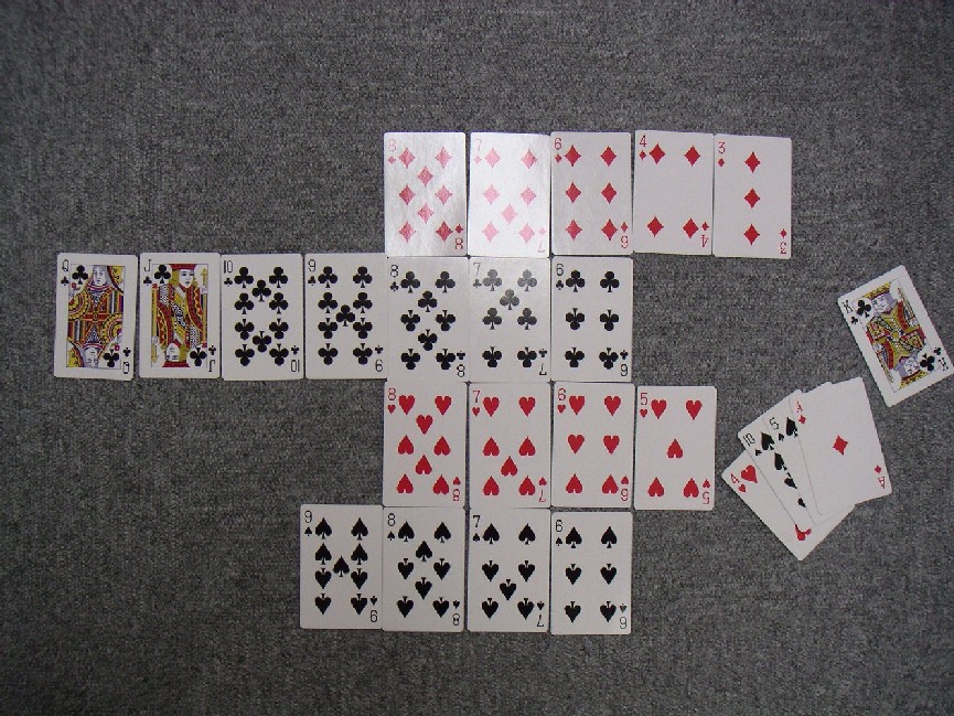 ■その2 『自由な場所へジョーカーが置ける』 通常ルールですとジョーカーを出せる条件として継ぎ札が無いと出せない。しかも、ジョーカー上がりは負けとなります。協会ルールではペナルティ(減点3)を課すことでジョーカーあがりは可能です。さらに無条件でどの場所でも切れます。そうすることでジョーカーをより戦略性の高い使い方ができるのです。