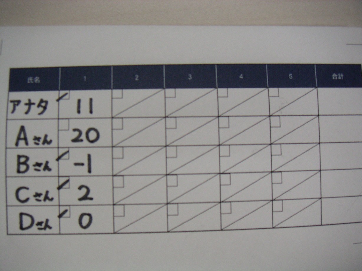 3位のBさんは、基本点数5点からドボン減点1で4点ですが・・・・残念ながら